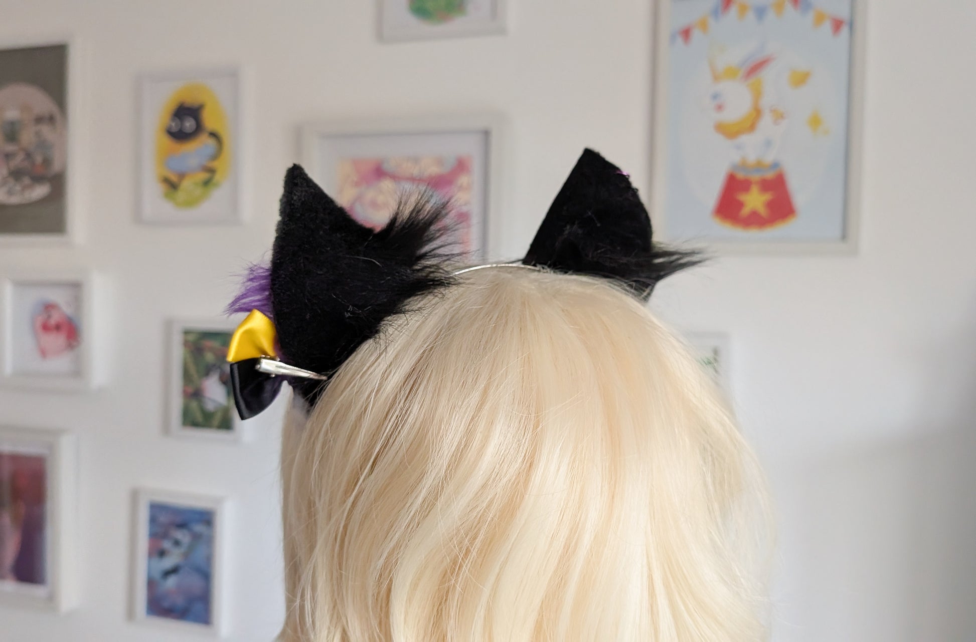 They are handmade by me in Northern Ireland using Faux fur and acrylic Inks attached to metal headband.