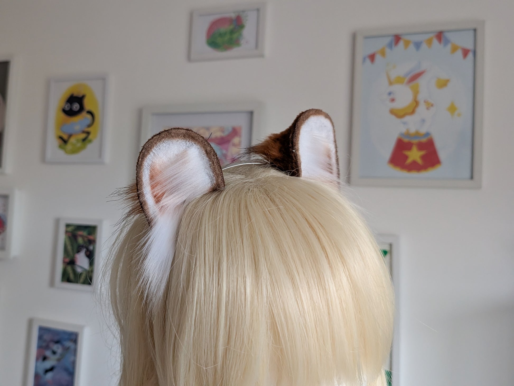 They are handmade by me in Northern Ireland using Faux fur and acrylic Inks attached to metal headband.